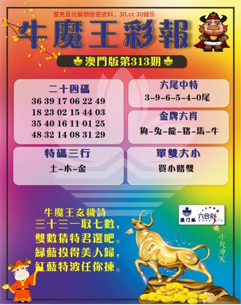 313期:七肖中特【马狗兔羊猪牛】开:龙38中