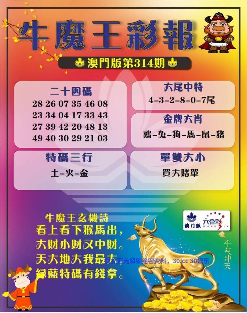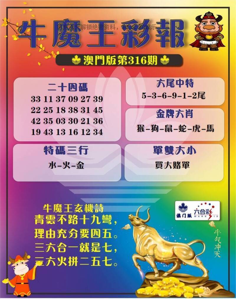 316期:七肖中特【牛鸡鼠虎猪兔】开:马24中